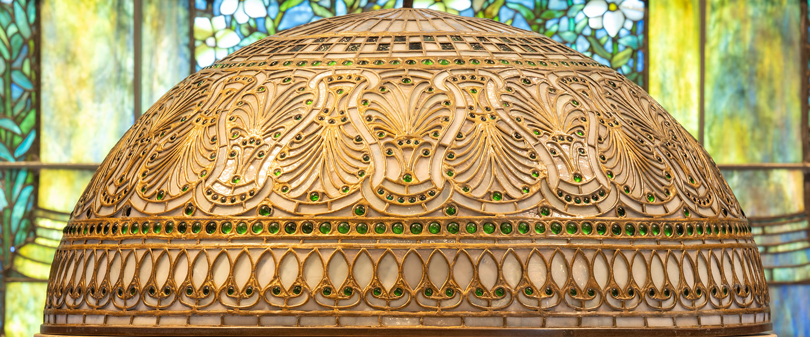 In 1957, when Tiffany’s abandoned estate was ravaged by fire, Hugh and Jeannette McKean of Winter Park, Florida, were notified by a Tiffany daughter that some of his most important leaded-glass windows were still intact. In 1930, after his graduation from Rollins College, Hugh McKean had been one of the young artists in residence at Laurelton Hall as part of a program established by Tiffany. Years later in 1942, Jeannette McKean had established a gallery-now The Charles Hosmer Morse Museum of American Art-on the Rollins College campus and named it to honor her grandfather. Her interest in Tiffany glass had prompted her to curate a show of his work at the gallery in 1955, one of the first one-man exhibitions of Tiffany work in the second half of 20th century.